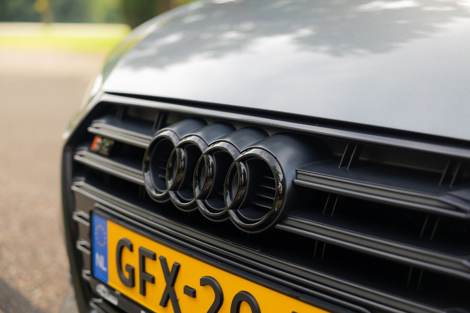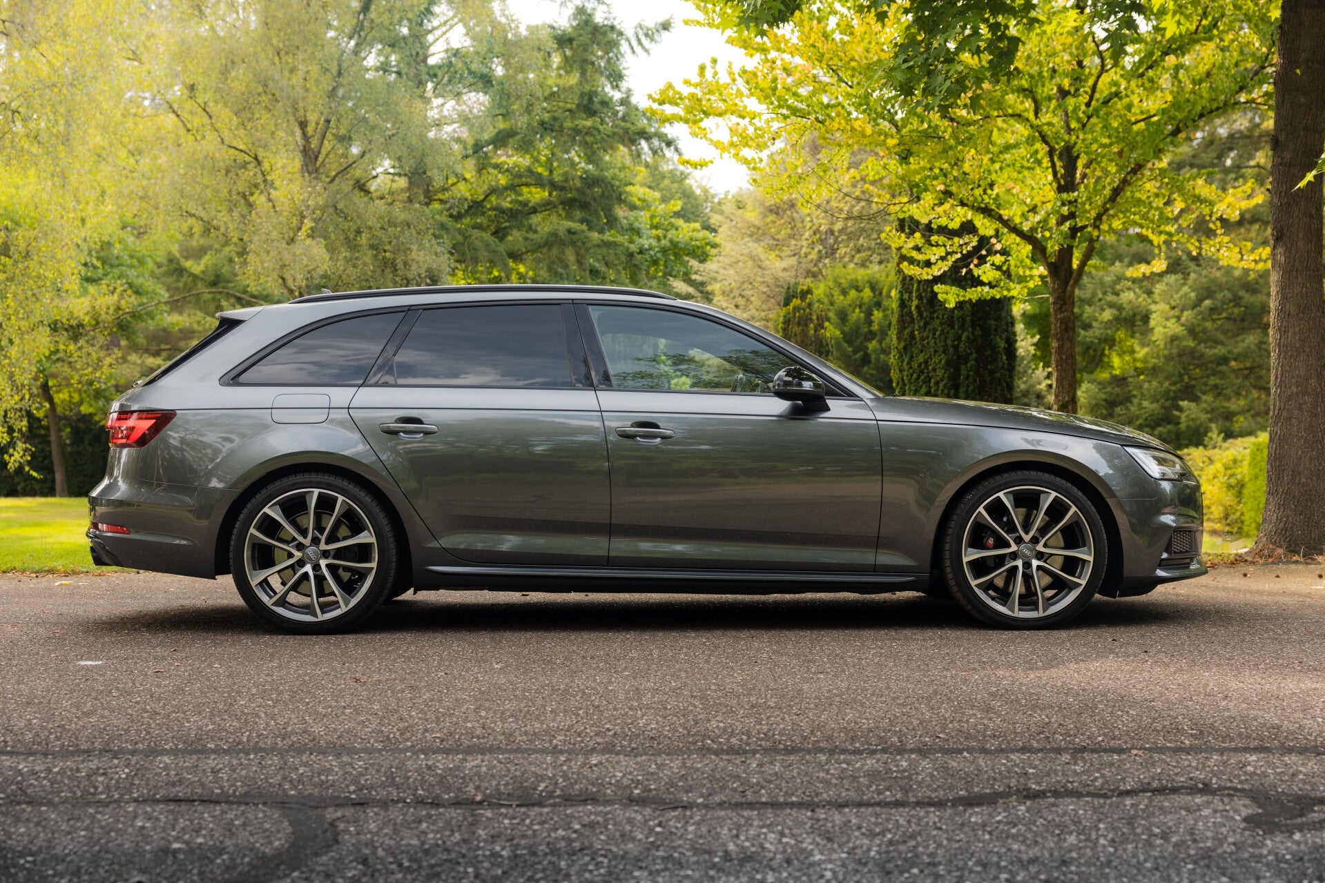 Naast deze set 19'' Audi-velgen met zomerbanden is ook een set 19'' Audi Black Style (Zwarte) velgen aanwezig. Zowel de zomer- als de winterbanden beschikken over goed profiel.